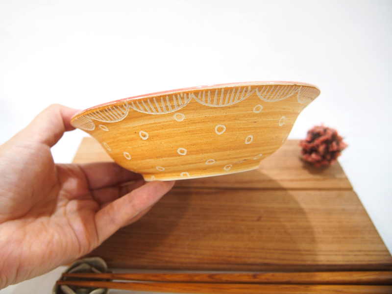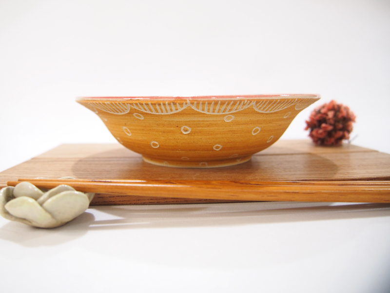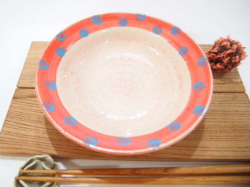 紋花彩泥掻落ドット 深皿 (赤×ピンク) 【nicorico】