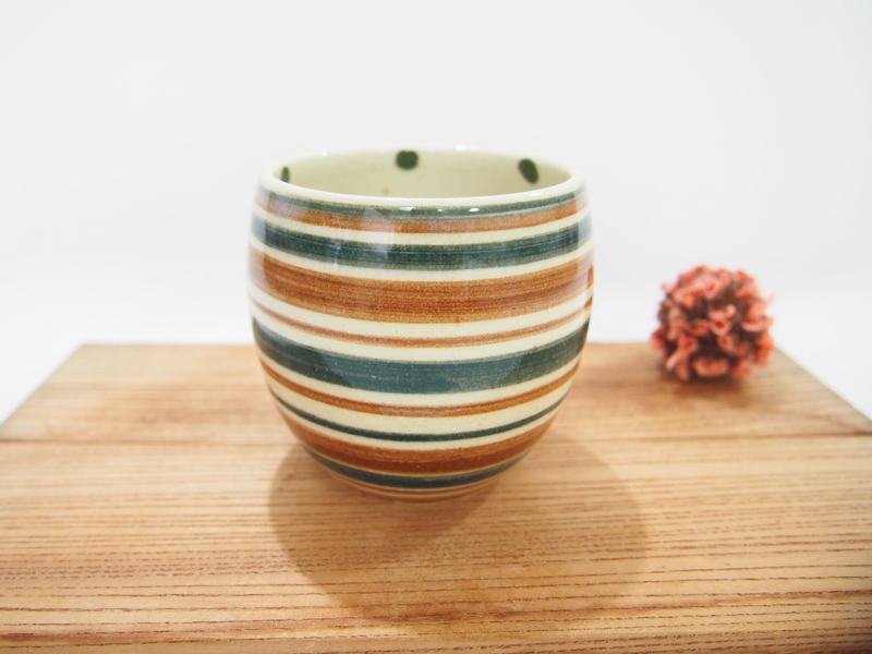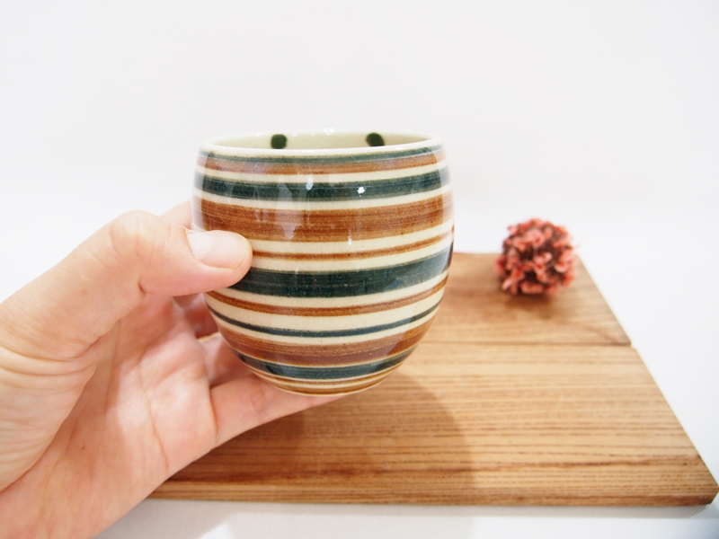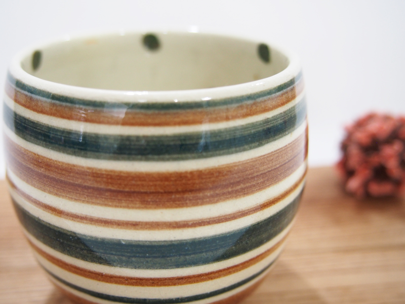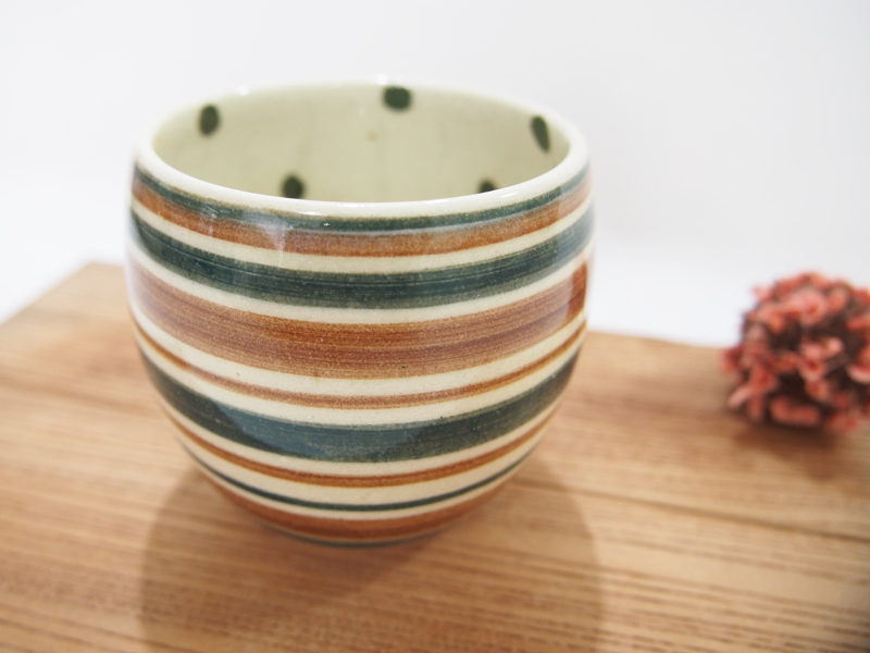 しましま×水玉 ゆのみ (濃緑×茶) 【nicorico】