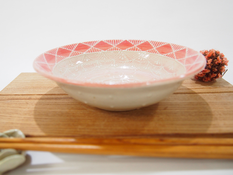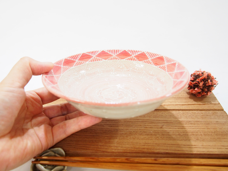 イッチン幾何学花紋 鉢(ピンク×赤) 【nicorico】