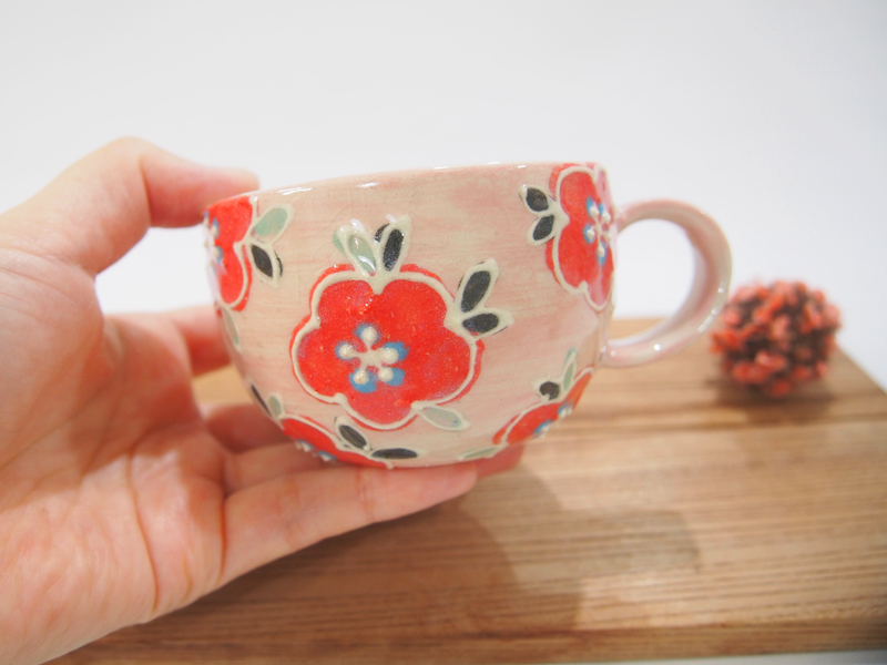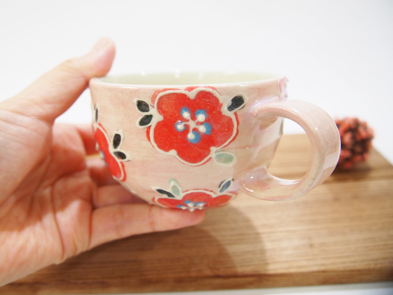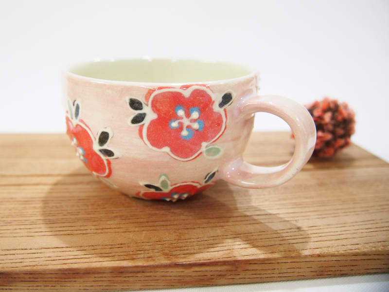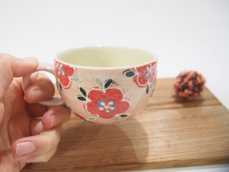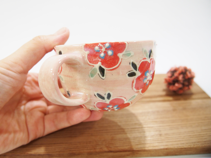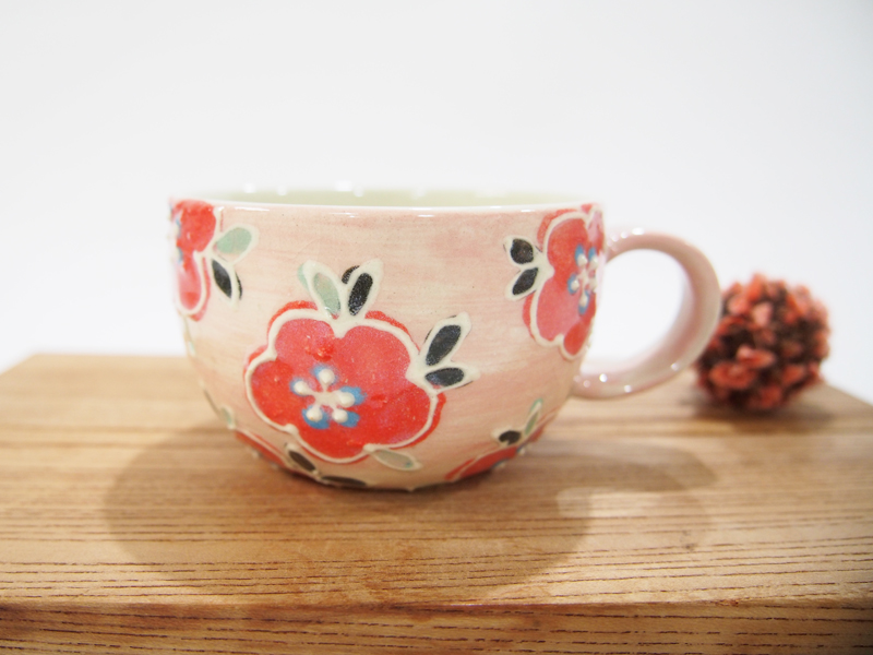 イッチン花紋 マグカップ (小)(丸・ピンク)【nicorico】