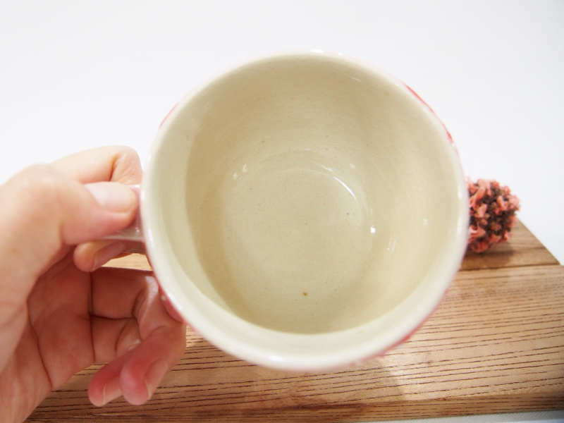 内側は土の白地をそのままに、透明の釉薬を掛けて仕上げています。