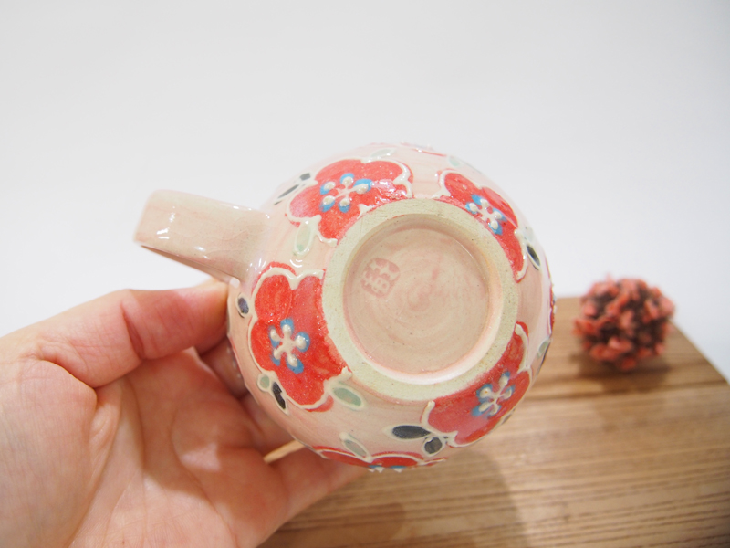 模様はぐるっと全面に入っており、釉薬も全体に掛けていますので質感はつるつるです。