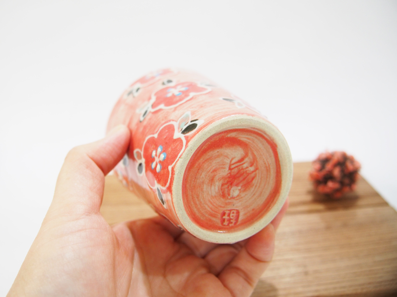 模様はぐるっと全面に入っており、釉薬も全体に掛けていますので質感はつるつるです。