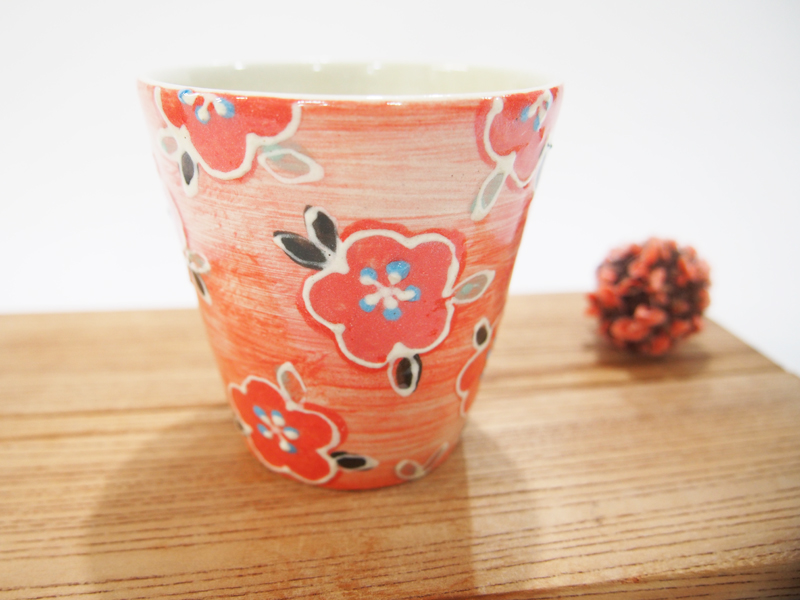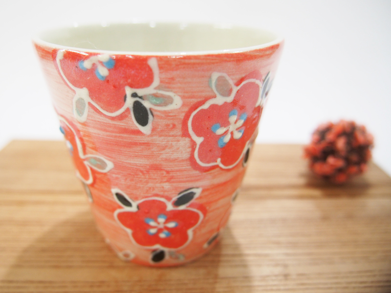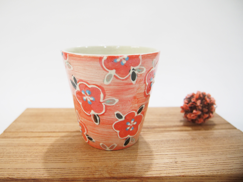イッチン花紋 フリーカップ (薄赤)【nicorico】